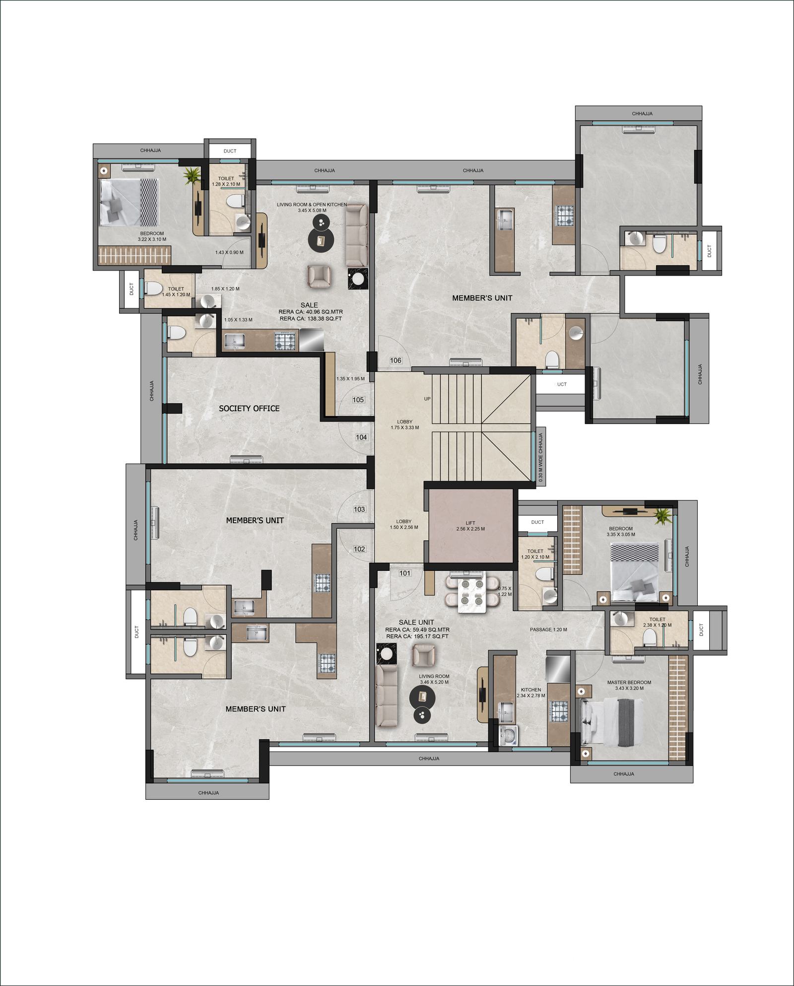 Every square inch of Poddar Vasundhara is meticulously designed to give you unparalleled space and comfort with smart configurations. Thoughtfully planned, these residences provide grand living areas, expansive balconies, and refined interiors.